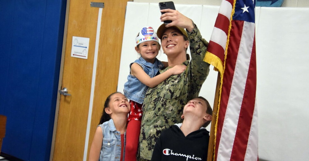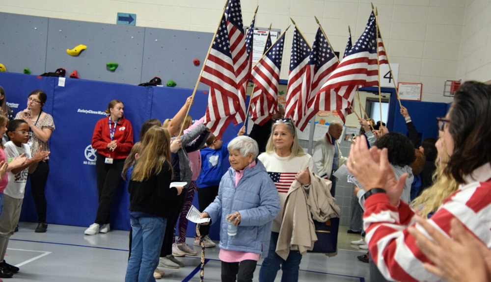 The assembly is a schoolwide effort. Grade-level educators devote time teaching about the holiday while practicing presentation skills. Students also performed a medley of songs for the guests before a slideshow featuring area veterans closed the ceremony.