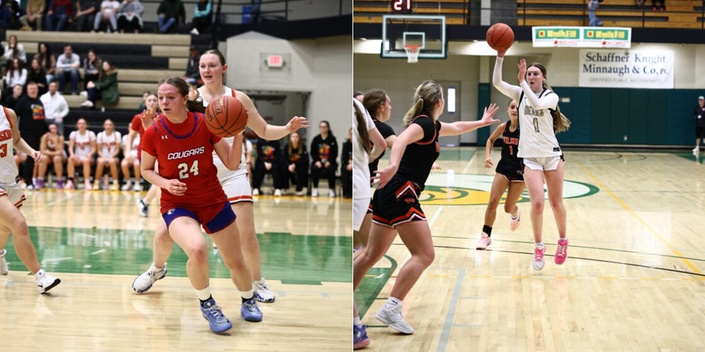Above, left, Cassadaga Valley junior Breonna Hopkins was named to the CCAA Division 3 girls basketball First Team after averaging 16.5 points and 8.0 rebounds per game for the Cougars. Above, right,Frewsburg's Jadyn Trocki was named the CCAA Division 3 girls basketball Player of the Year after averaging 19.9 points, 4.3 rebounds, 5.8 steals, 5.3 assists and 1.8 blocked shots per game for the Bears. Photos courtesy of Steve Garvey